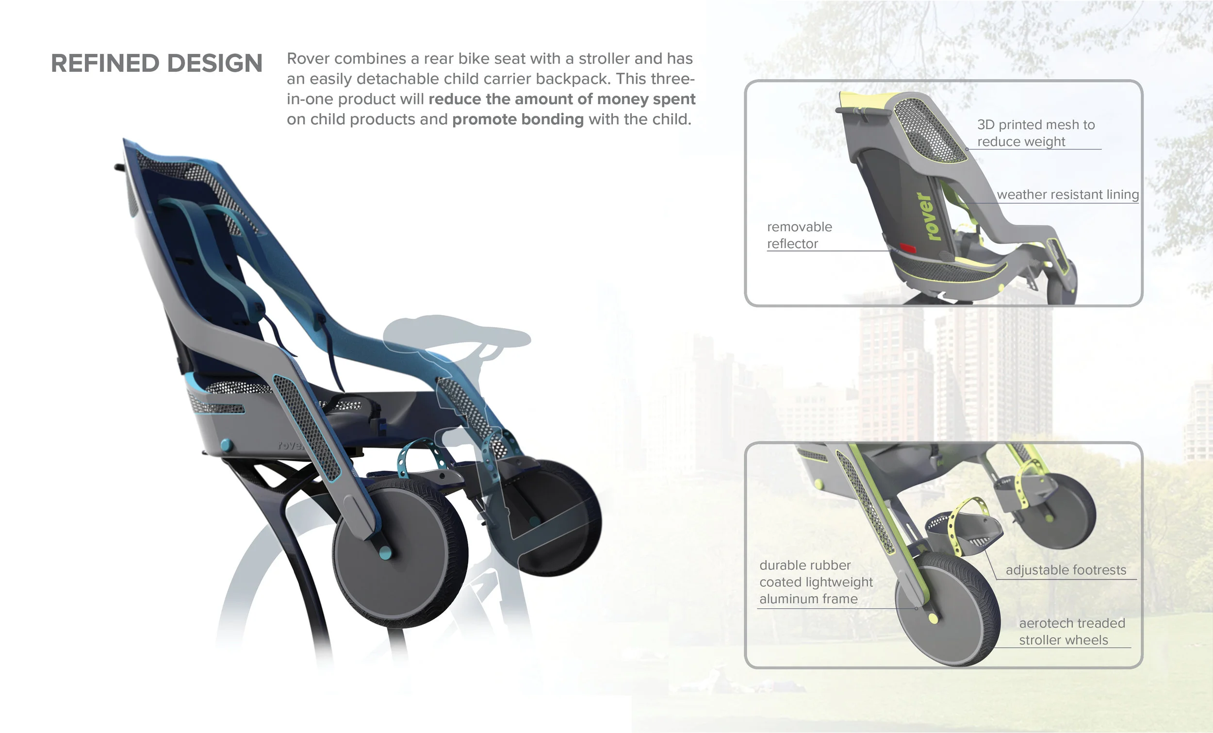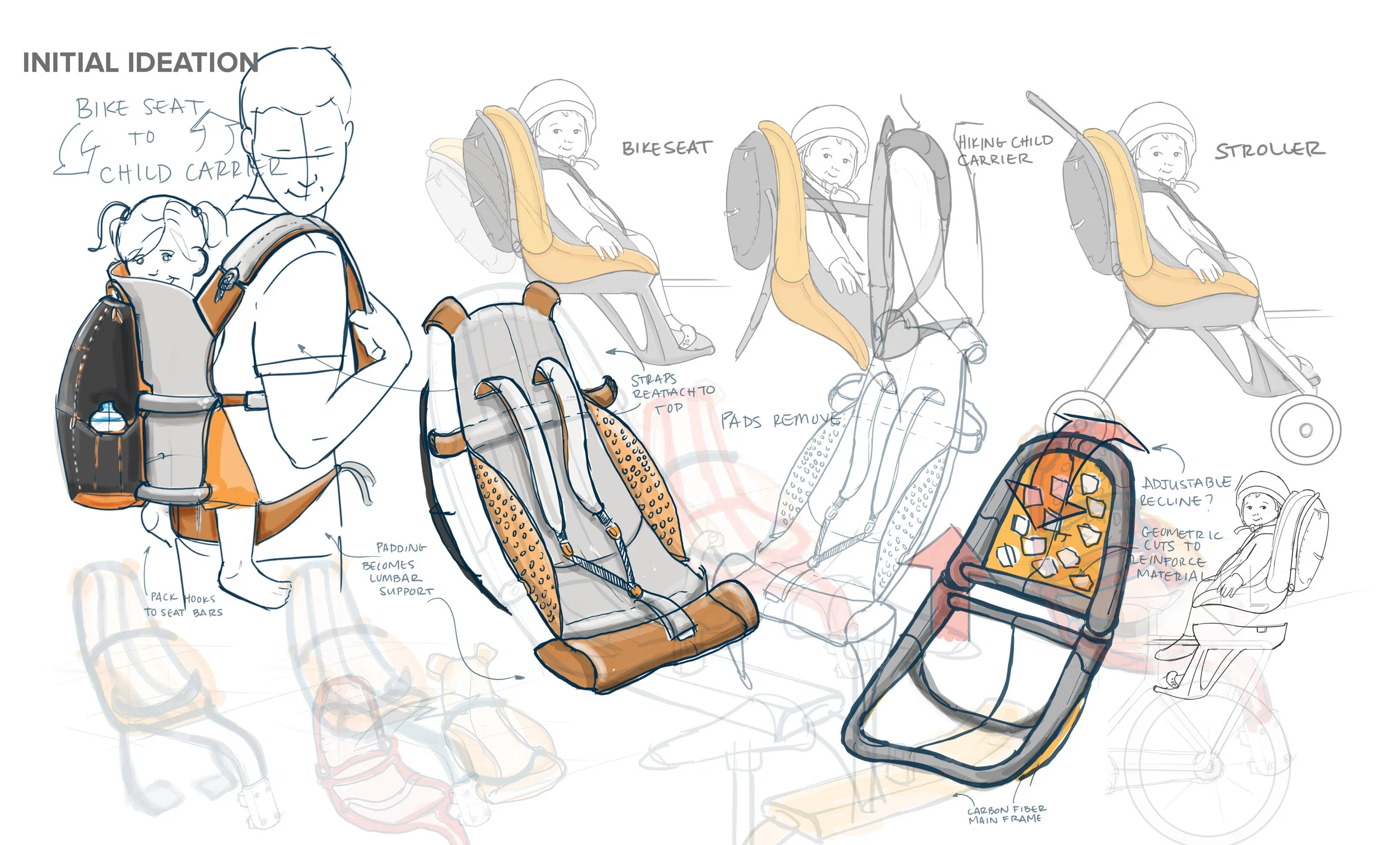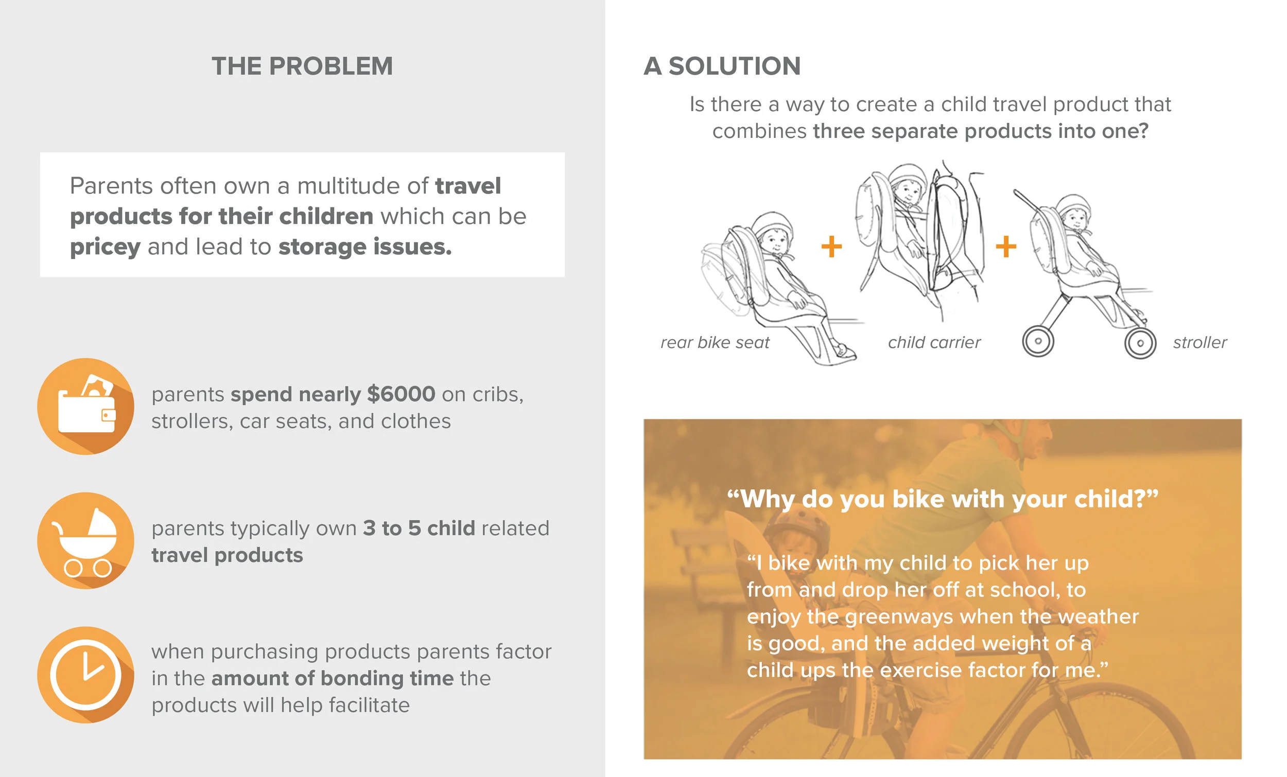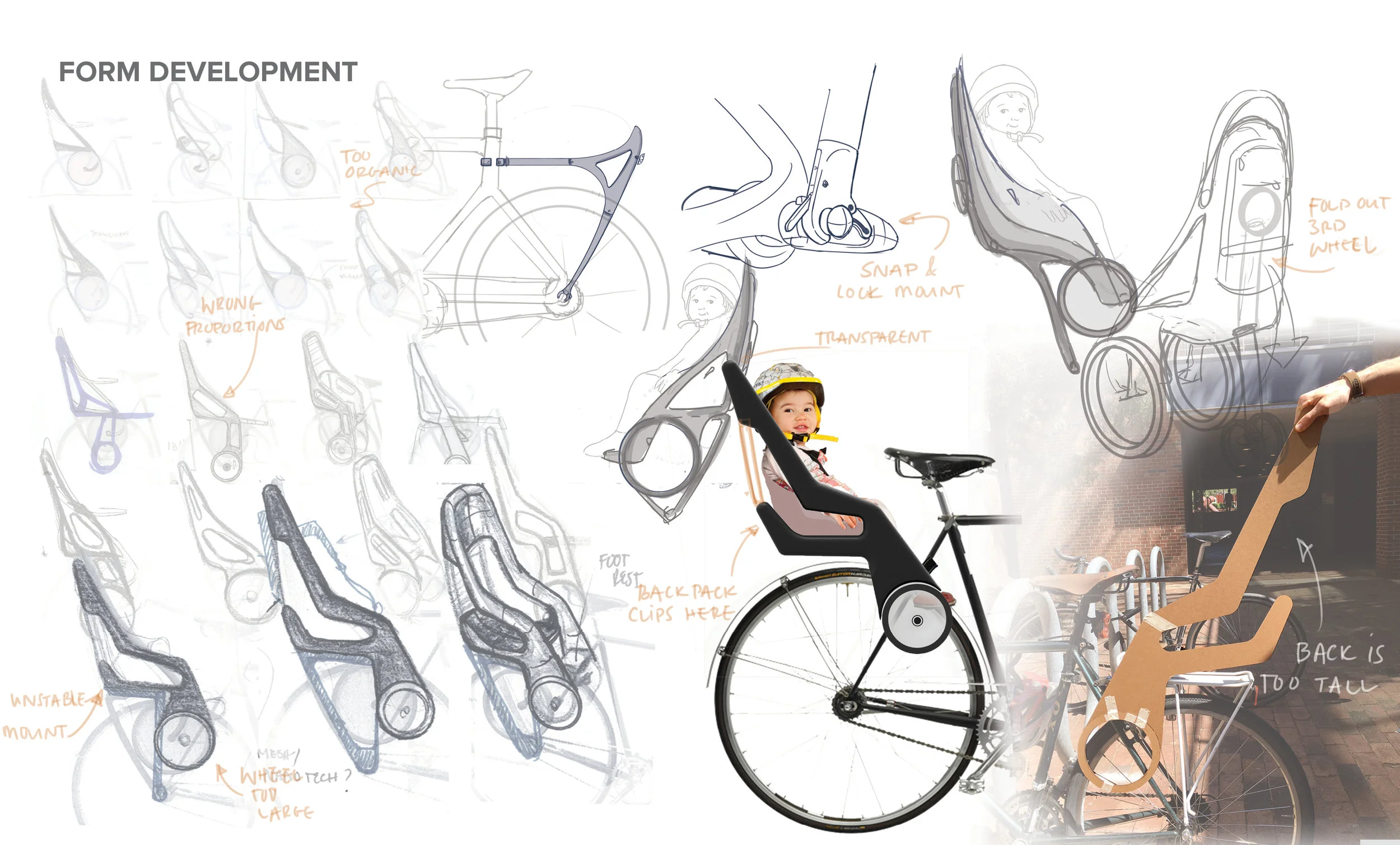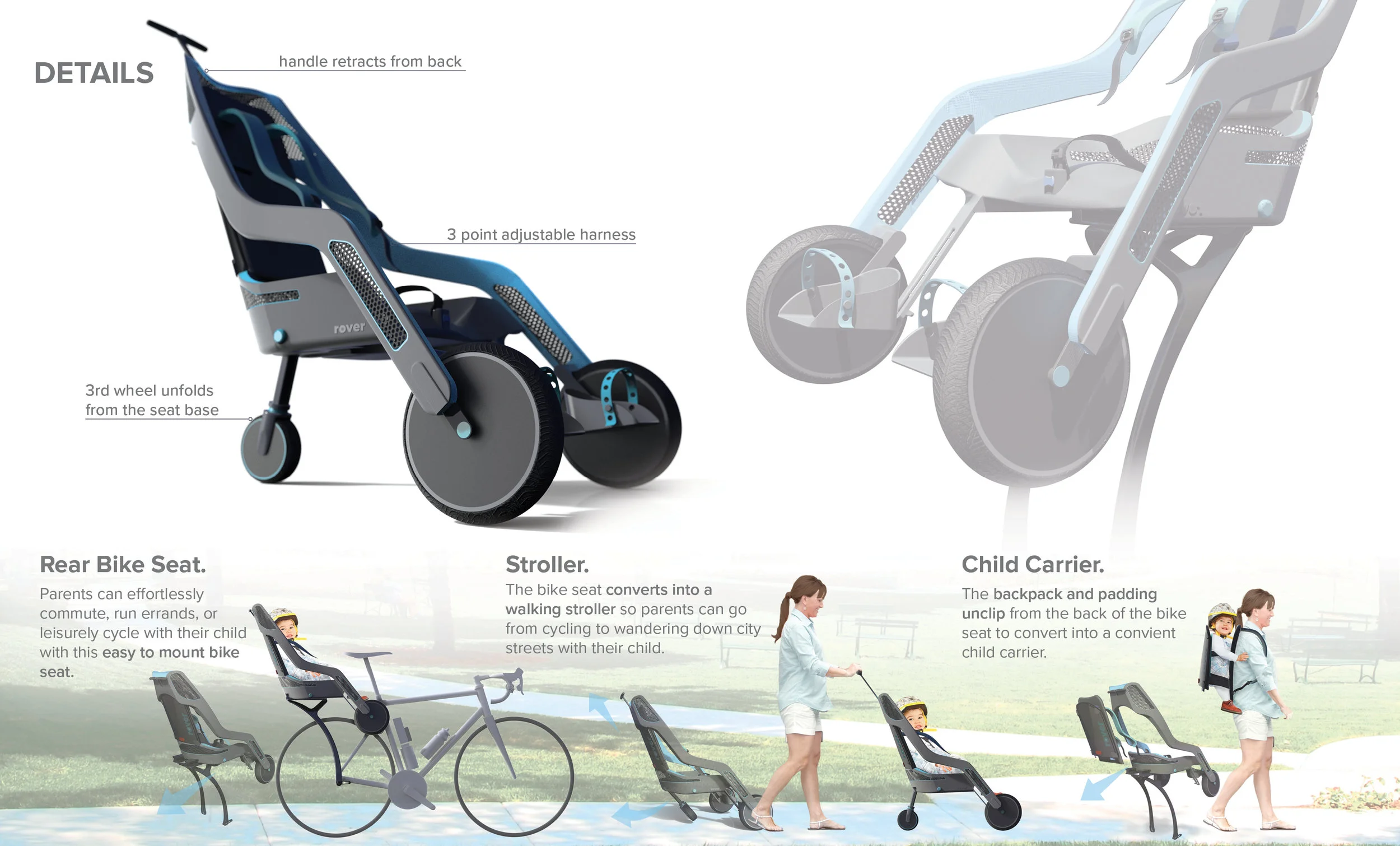 Is there a way create an adjustable and modular child rear bike seat that combines 3 separate child travel products into 1?